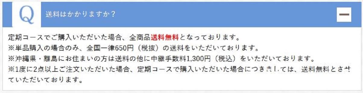 単品購入だと送料が税抜650円かかるところを、定期コースや2点以上購入した場合は送料が無料になります