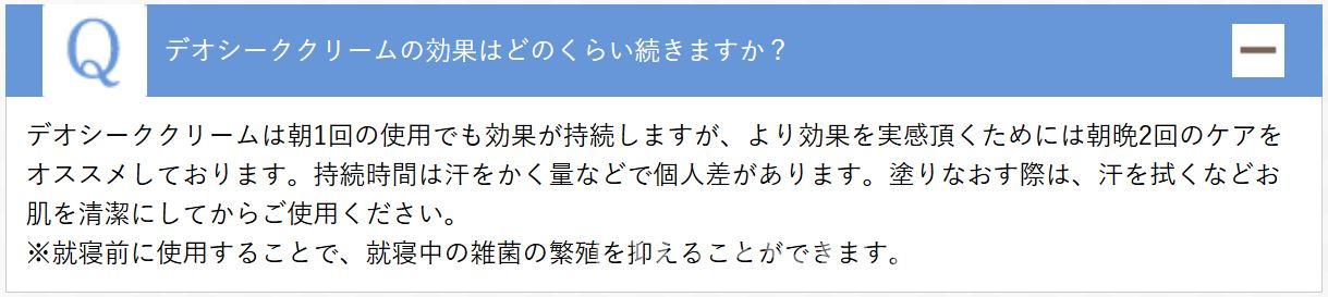 デオシークのクリームには99.999%の殺菌力があるので、これで匂いに対しての即効性はひとまず安心です。